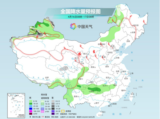 具體來(lái)看,中央氣象臺(tái)預(yù)計(jì),今天,新疆沿天山地區(qū)和南疆西部山區(qū)、內(nèi)蒙古東北部、青海南部、西藏南部等地部分地區(qū)有小到中雪或雨夾雪,其中,新疆沿天山等地局地有大到暴雪。新疆北部、內(nèi)蒙古東部、湖南中部、江西中部、四川南部、貴州大部、云南西部等地部分地區(qū)有小到中雨,其中,新疆伊犁河谷局地有大雨。