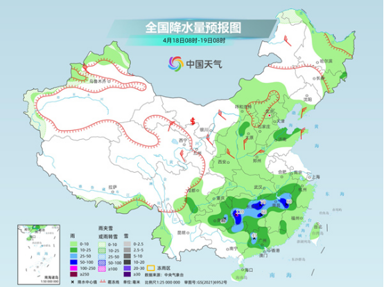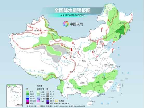 明天,新疆阿勒泰地區(qū)、青海北部和西部、甘肅河西、內(nèi)蒙古東北部、西藏南部等地部分地區(qū)有小雪或雨夾雪。新疆東部、陜西北部、內(nèi)蒙古西北部和東部、東北地區(qū)大部、山西北部、江南大部、華南北部等地部分地區(qū)有小到中雨,其中,吉林東部局地有大雨。