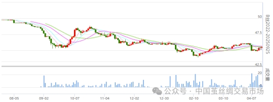 今日(周三)盤面新繭季生絲合約多有不同程度略收漲。