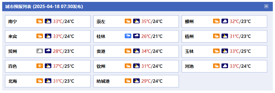 廣西氣象臺(tái)18日08時(shí)發(fā)布預(yù)報(bào):