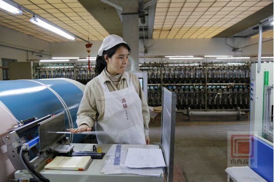 走進(jìn)潞安府潞綢集團(tuán)織造車間,只見一臺(tái)臺(tái)已有60多年歷史的織機(jī)飛速運(yùn)轉(zhuǎn),伴著吱吱喳喳的機(jī)杼聲,經(jīng)線和緯線不停交織,實(shí)現(xiàn)從“一根絲”到“一匹綢”的生產(chǎn)??椩鞕C(jī)間,四臺(tái)智能化設(shè)備格外引人注目。隨著設(shè)備高速轉(zhuǎn)動(dòng),智能紡錘上下舞動(dòng),銀色天絲飛舞成錠,一匹匹潞綢很快成型。智能織機(jī)的引進(jìn),極大地提高了潞綢織造效率,實(shí)現(xiàn)了降本增效。