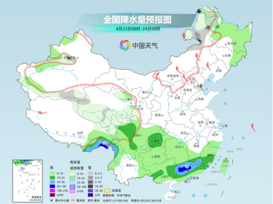 具體來看,中央氣象臺(tái)預(yù)計(jì),今天內(nèi)蒙古東北部、黑龍江西北部、新疆沿天山地區(qū)和南疆西部山區(qū)、西藏北部、青海中南部、甘肅南部、川西高原北部等地部分地區(qū)有小到中雪或雨夾雪,其中,內(nèi)蒙古東北部、黑龍江西北部等地部分地區(qū)有大雪或暴雪。江西南部、福建南部、廣東中北部、廣西東部和中部、川西高原東部、重慶中西部、云南西北部、西藏東南部等地部分地區(qū)有中到大雨,其中,西藏東南部、廣東北部等地部分地區(qū)有暴雨。