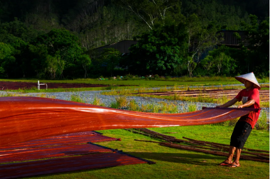 香云紗被譽為“絲綢界的軟黃金”,其制作工藝復(fù)雜,需歷經(jīng)“三蒸九煮十八曬”,但傳統(tǒng)生產(chǎn)周期長、品質(zhì)不穩(wěn)定等問題制約了市場應(yīng)用。四川省絲綢科學研究院通過提升改進香云紗制作工藝,結(jié)合數(shù)碼印花技術(shù),成功實現(xiàn)香云紗的規(guī)模化、個性化生產(chǎn),并融入蜀錦等四川文化元素,打造出兼具傳統(tǒng)韻味與現(xiàn)代審美的產(chǎn)品。目前,首批融入非遺技藝的香云紗面料已進入打樣階段,預(yù)計年內(nèi)展廳將展出150余款創(chuàng)新設(shè)計。
