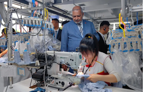 趙燕輝表示,印度、巴基斯坦(部分轉(zhuǎn)中東市場)是公司出口主要市場之一。順成公司始終將傳承中華非遺文化、推動鄉(xiāng)村振興視為企業(yè)使命,并希望以“一帶一路”倡議為紐帶,與各國在絲綢產(chǎn)業(yè)技術(shù)交流、特色產(chǎn)品貿(mào)易及文化遺產(chǎn)保護(hù)等領(lǐng)域展開合作。巴基斯坦駐華大使哈利勒·烏爾·拉赫曼·哈什米回應(yīng)稱:“中巴經(jīng)濟(jì)走廊是‘一帶一路’合作的典范,巴基斯坦愿與中國絲綢企業(yè)共享市場機遇,共同探索棉紡與絲綢產(chǎn)業(yè)的互補潛力?!?/p>
