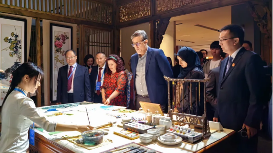 活動尾聲,使節(jié)團(tuán)參與了蜀繪DIY體驗及有獎互動環(huán)節(jié),非遺大師在絲綢上繪制了象征友好合作的圖案;絲綢不僅是商品,更是跨越國界的情感載體。期待非洲的手工蠟染技藝能與蜀繪展開對話,共同豐富“一帶一路”的文化圖景。