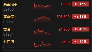 茶飲股集體上行,奈雪的茶漲超8%?,F(xiàn)制茶飲品牌滬上阿姨4月28日起正式開啟招股,全球發(fā)行241.13 萬股,每股招股價95.57至113.12港元。截至今早10點左右,滬上阿姨孖展額已增至 48.62億元,孖展超購約 178.24倍。國金證券表示,近期頭部茶飲企業(yè)陸續(xù)上市,行業(yè)競爭加劇背景下,看好低價格帶格局穩(wěn)定賽道,以及中價格帶產(chǎn)品性價比高供應(yīng)鏈扎實的企業(yè)。
