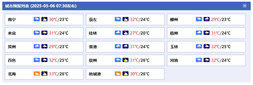 廣西氣象臺(tái)6日05時(shí)發(fā)布預(yù)報(bào):