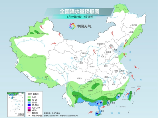 后天,華南大部、云南東部、新疆伊犁河谷、臺(tái)灣島等地部分地區(qū)有中到大雨,其中,廣西東南部、廣東西南部、海南島中部等地部分地區(qū)有暴雨。