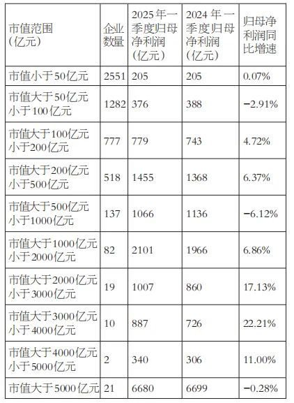 2025年一季度共有5399家上市公司披露了業(yè)績,整體同比增速為3.37%,業(yè)績增速大于零的比例為54.72%。