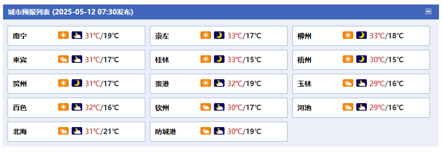 廣西氣象臺(tái)12日05時(shí)發(fā)布預(yù)報(bào):