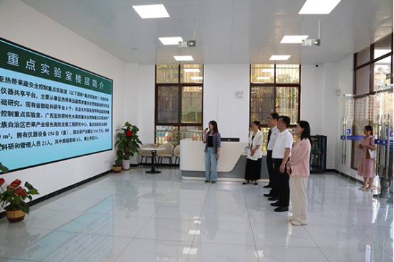 會后,卿軍一行先后參觀了廣西熱作所成果展示廳、亞熱帶果蔬安全控制重點實驗室、亞熱帶果品蔬菜質(zhì)量檢驗測試中心、亞熱帶農(nóng)產(chǎn)品加工工程技術(shù)中心、廣西熱作所(東盟)亞熱帶植物園。