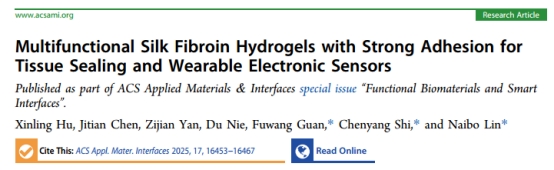 Hu X, Chen J, Yan Z, et al. Multifunctional Silk Fibroin Hydrogels with Strong Adhesion for Tissue Sealing and Wearable Electronic Sensors[J]. ACS Applied Materials & Interfaces, 2025.