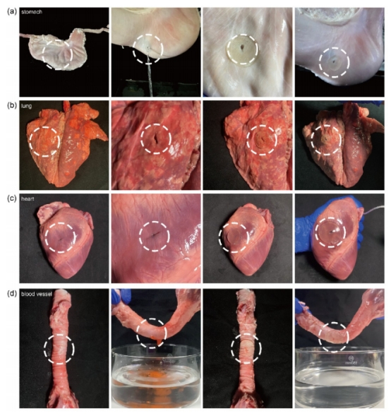 圖6 豬皮組織在短期內(nèi)用PGS水凝膠密封圖