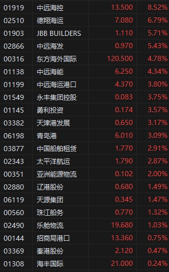 航運及港口板塊齊漲,中遠海控漲超8%。據(jù)報道,中國貿(mào)促會會長任鴻斌5月12日在京會見美國谷物協(xié)會主席維里蒂·烏利巴里和總裁兼首席執(zhí)行官瑞安·勒格朗德一行,雙方就促進中美工商界交流、加強農(nóng)業(yè)產(chǎn)業(yè)鏈供應(yīng)鏈國際合作、支持外國商協(xié)會在華發(fā)展等議題進行交流。尾盤集運歐線期貨主連出現(xiàn)異動,尾盤急速拉升觸發(fā)漲停。