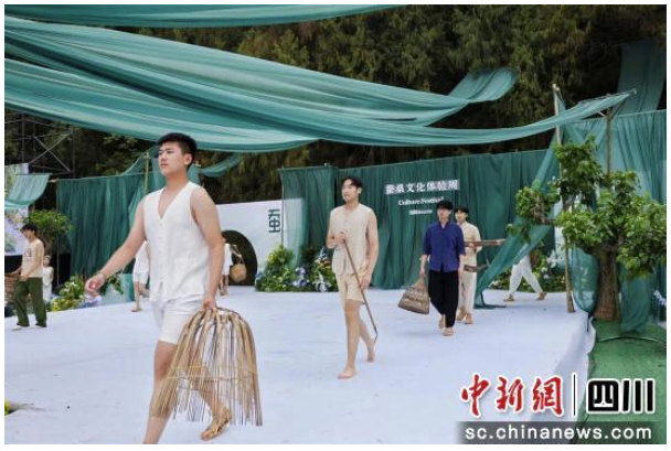 當(dāng)日上午9時,游仙區(qū)鹽泉鎮(zhèn)千年古桑樹園林內(nèi)人潮涌動,熱鬧非凡?;顒游耸锇肃l(xiāng)的上千名群眾。上午10時,開幕式舉行。舞臺上,國潮創(chuàng)意表演團隊在古桑樹下演繹了一場“華裳飛揚”主題T臺秀。模特身著以蠶絲為原料的國潮服飾,在樹影間穿梭,展現(xiàn)了耕織文明與現(xiàn)代美學(xué)的完美融合,吸引了眾多游客駐足觀賞。
