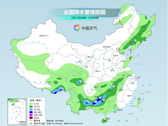 未來(lái)三天(5月14日至16日),南方降雨將明顯增多、增強(qiáng),部分地區(qū)有暴雨并伴有強(qiáng)對(duì)流天氣,需注意防范次生災(zāi)害的發(fā)生。氣溫方面,今明天,北方高溫暫時(shí)消退,16日以后高溫還會(huì)再度發(fā)展,需注意防暑。