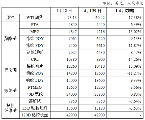 表1 2025年以來化纖主要產(chǎn)品及原料價(jià)格變化