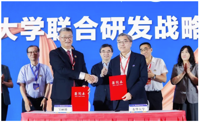 圖 | 東華大學(xué)&寶麗迪聯(lián)合研發(fā)戰(zhàn)略合作簽約,雙方擬校企合作共建 “寶麗迪-東華大學(xué)功能纖維母粒技術(shù)聯(lián)合研發(fā)中心”,雙方將建立長效機(jī)制,進(jìn)一步通過產(chǎn)學(xué)研聯(lián)動(dòng)推動(dòng)纖維母粒制品開發(fā)、提升市場(chǎng)競(jìng)爭(zhēng)力,該平臺(tái)將作為高端技術(shù)產(chǎn)業(yè)孵化基地。