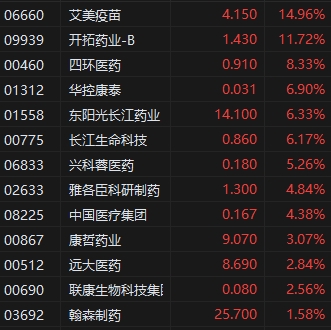 部分藥品股沖高,艾美疫苗漲近15%。中信建投今日也指出,預(yù)計2025年,重磅疫苗品種在低基數(shù)下有望恢復(fù)銷售增長趨勢,推動企業(yè)業(yè)績改善。創(chuàng)新疫苗管線持續(xù)推進,將為企業(yè)帶來未來更大的市場空間和潛在的出海機會。