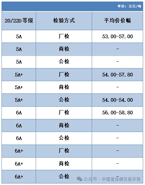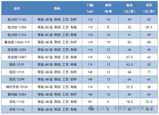 本周高品位生絲協(xié)作單位成交價(jià)格區(qū)間