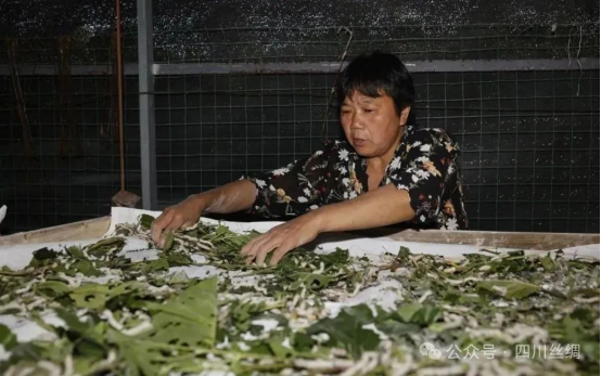 “晴采桑,雨采桑,田頭陌上家家忙?!毖巯抡瞪PQ養(yǎng)殖旺季,樂至縣桑浪翻涌,綠意盎然。蠶房外,蠶農(nóng)們?cè)谏L镩g穿梭忙碌,采摘桑葉,為今年的春蠶養(yǎng)殖準(zhǔn)備食料;蠶房?jī)?nèi),工人們正在給進(jìn)入五齡期的蠶子“催食”。