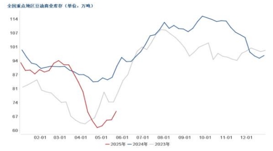 在四月掀起腥風(fēng)血雨的進(jìn)口大豆(4521, -21.00, -0.46%)通關(guān)問題在緩解之后,油廠開機率一路上行,與此同時,豆油的庫存拐點也在五一前出現(xiàn),目前已經(jīng)連續(xù)累庫四周。鋼聯(lián)數(shù)據(jù)顯示,截至5月23日,全國重點地區(qū)豆油商業(yè)庫存69.72萬噸,環(huán)比之前一周增加6.23%,較去年同期減少23.84%。