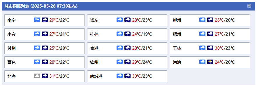 廣西氣象臺(tái)28日05時(shí)發(fā)布預(yù)報(bào):
