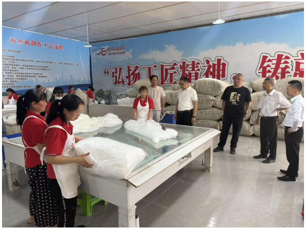 銀海絲綢蠶絲被生產(chǎn)車間考察學(xué)習(xí)并交流座談