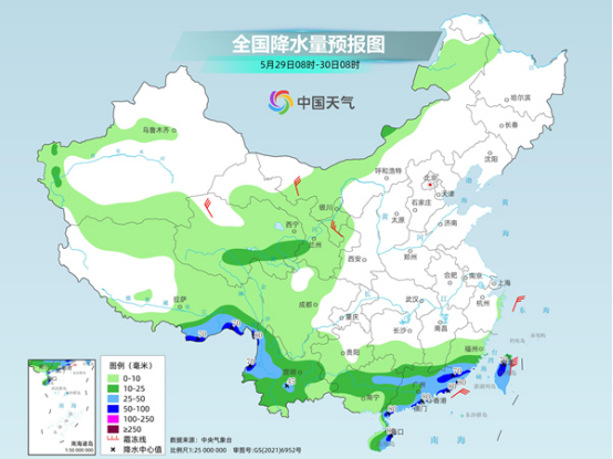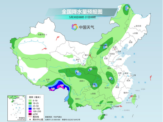 后天至6月2日,中東部新一輪降水過程來襲,南方多地將現(xiàn)較強(qiáng)降雨,降雨核心區(qū)域較此次將有所北抬,或集中在長江中下游沿線以及江南北部等地。其中后天,西北地區(qū)東南部、黃淮西部、江淮、江漢、江南北部、川西高原北部、西藏東南部、云南西部等地部分地區(qū)有中到大雨,其中,西藏東南部、云南西北部、湖北東部、安徽西南部、河南東南部、江西北部等地部分地區(qū)有暴雨或大暴雨。