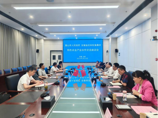 5月23日下午,安徽省潛山市副市長戴海兵率農(nóng)業(yè)農(nóng)村局局長汪學(xué)軍、潛山市槎水鎮(zhèn)黨委書記馮耀廷一行到省農(nóng)業(yè)科學(xué)院蠶桑研究所調(diào)研交流,所長鐘金玲主持座談會,副所長汪泰初及相關(guān)研究室負(fù)責(zé)人參會。