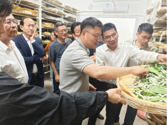 會上,雙方重點(diǎn)圍繞項(xiàng)目申報、成果轉(zhuǎn)化、平臺建設(shè)等問題,深入探討了推動潛山市蠶桑產(chǎn)業(yè)高質(zhì)量發(fā)展的思路和舉措,詳細(xì)謀劃了下一步合作具體方案。會后,調(diào)研組一行實(shí)地考察了蠶桑研究所家蠶種保育中心、智能化養(yǎng)蠶設(shè)備、人工飼料育實(shí)驗(yàn)室及食藥用菌種質(zhì)資源庫等科研平臺,詳細(xì)了解相關(guān)設(shè)備運(yùn)行情況。