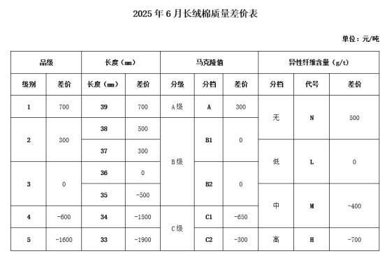 依據(jù)2025年5月的棉花公檢質(zhì)量數(shù)據(jù)、中國(guó)棉花協(xié)會(huì)質(zhì)量差價(jià)系統(tǒng)采集的加工企業(yè)銷售價(jià)和紡織企業(yè)到廠價(jià),以及當(dāng)月的中國(guó)棉花價(jià)格指數(shù),并征求業(yè)內(nèi)相關(guān)專家的意見(jiàn),與上月相比,與上月相比做出如下調(diào)整:
