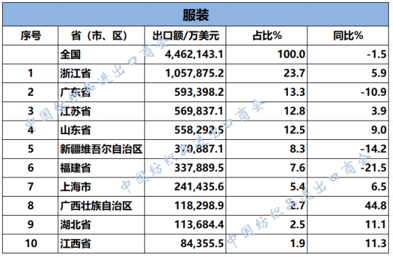2025年1-4月我國(guó)紡織服裝重點(diǎn)省市出口概況