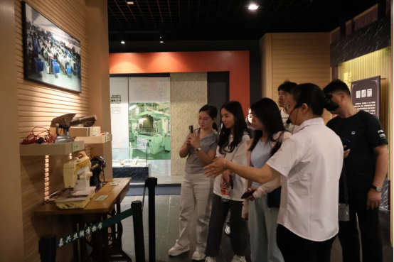 學員們首站來到嘉興絲綢博物館,開啟了一場穿越千年的絲綢文化探索之旅。這座由嘉欣絲綢集團投資興建的專業(yè)博物館,以其豐富的館藏和生動的展陳,為學員們?nèi)轿徽宫F(xiàn)了嘉興作為“中國綢都”的深厚歷史底蘊和創(chuàng)新發(fā)展之路。博物館通過四大展廳系統(tǒng)展示了絲綢發(fā)展歷程。在序廳,巨型蠶繭藝術(shù)裝置與南宋織造工具相映成趣,六幅浮雕生動再現(xiàn)傳統(tǒng)絲綢生產(chǎn)工藝。歷史廳陳列著南北朝至明清時期的珍貴絲綢文物,包括燈樹紋錦、彩條綾等代表性藏品。綜藝坊展區(qū)融合傳統(tǒng)工藝與現(xiàn)代科技,全息投影展示蠶的生命周期,實物展陳呈現(xiàn)織機演變歷程。