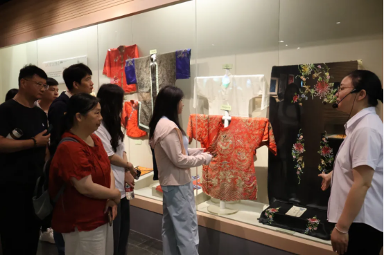 2025年5月27日上午,第十二期非遺織錦研修班學員在織錦研修項目負責人祝成炎教授、浙江理工大學紡織非遺研究所所長張紅霞教授的帶領(lǐng)下,赴嘉興開展深度考察,先后探訪了嘉興絲綢博物館和嘉興市特欣織造有限公司。