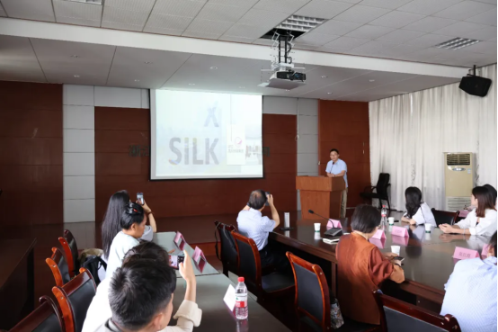 在考察座談會上,嘉興特欣織造有限公司總經(jīng)理王國夫介紹了母公司浙江嘉欣絲綢集團的發(fā)展戰(zhàn)略。作為行業(yè)領(lǐng)軍企業(yè),該集團秉持“貿(mào)易為龍頭,實業(yè)為基礎(chǔ)”的經(jīng)營理念,經(jīng)過近四十年的工貿(mào)一體化發(fā)展,已構(gòu)建起完整的絲綢產(chǎn)業(yè)鏈體系。集團以嘉興總部為核心,在內(nèi)地及東南亞布局三大服裝供應鏈集群,形成了規(guī)范化、規(guī)模化、現(xiàn)代化的產(chǎn)業(yè)格局。旗下?lián)碛?926年創(chuàng)立的“金三塔”經(jīng)典品牌,通過“絲針織”等技術(shù)創(chuàng)新,在傳承傳統(tǒng)工藝的同時開發(fā)出更具舒適性的現(xiàn)代真絲產(chǎn)品。集團堅持絲綢主業(yè)不動搖,持續(xù)推進技術(shù)升級與產(chǎn)品創(chuàng)新,致力于為全球市場提供融合傳統(tǒng)文化與現(xiàn)代美學的高品質(zhì)絲綢產(chǎn)品。