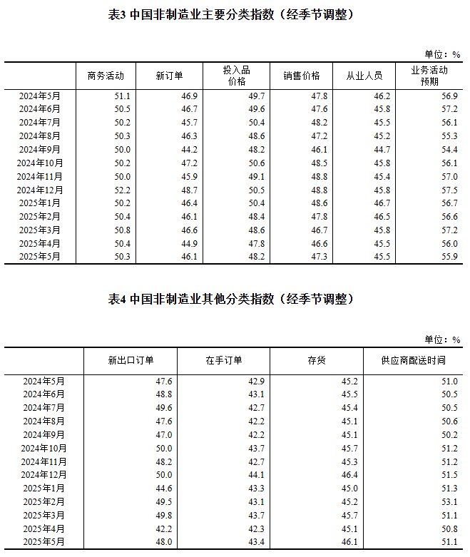 從業(yè)人員指數(shù)為48.1%,比上月上升0.2個(gè)百分點(diǎn),表明制造業(yè)企業(yè)用工景氣度有所改善。