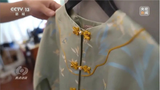 除了傳統(tǒng)的紡織業(yè)從業(yè)人員,宋錦真正出圈,還少不了更多年輕人的參與。在蘇州街頭,記者發(fā)現(xiàn)了一家很有特色的新中式服裝店。里面不少服裝選用的都是宋錦、羅料等傳統(tǒng)面料來手工制作。