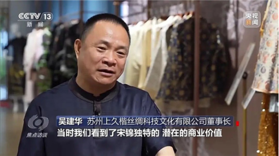 蘇州上久楷絲綢科技文化有限公司董事長 吳建華:宋錦從一個默默無聞躺在博物館里面的面料,到一下子天下聞名,當時我們看到了宋錦獨特的、潛在的商業(yè)價值。