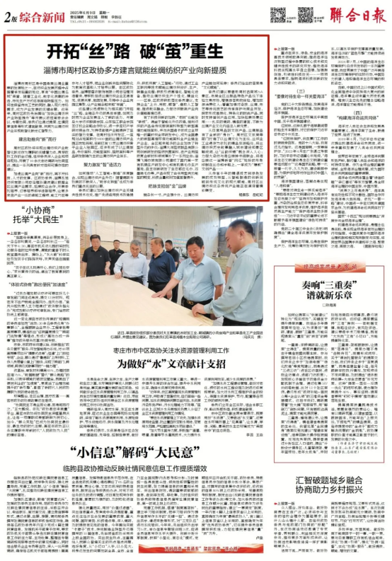 山東省淄博市周村區(qū)是中國桑蠶絲綢業(yè)重要的發(fā)源地之一,在紡織業(yè)發(fā)展歷程中占據(jù)著舉足輕重的地位,享有“中國絲綢名城”美譽(yù)。隨著工業(yè)化、數(shù)字化浪潮的沖擊,傳統(tǒng)生產(chǎn)方式逐漸面臨轉(zhuǎn)型壓力。如何在保留傳統(tǒng)工藝的同時,融入現(xiàn)代市場需求,成為產(chǎn)業(yè)發(fā)展的關(guān)鍵命題。近年來,周村區(qū)政協(xié)先后圍繞“加快絲綢紡織產(chǎn)業(yè)轉(zhuǎn)型提升”等開展議政性常委會會議、專題協(xié)商,委員們也通過提案、社情民意信息等形式建言獻(xiàn)策,共同為絲綢紡織產(chǎn)業(yè)實現(xiàn)數(shù)智化躍遷匯智聚力。