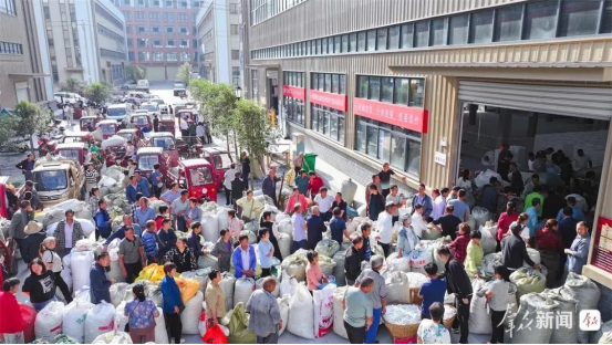 6月5日,在石泉縣池河鎮(zhèn)蠶繭交易智能化收烘中心,蠶農(nóng)排隊(duì)售賣今年第一批春繭。