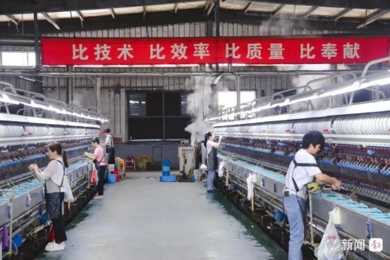 6月6日,在石泉縣一家繅絲企業(yè)車間,工人正在生產(chǎn)。