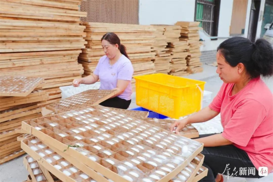 6月5日,在石泉縣池河鎮(zhèn)蠶繭交易智能化收烘中心,蠶農(nóng)忙碌地整理選繭。