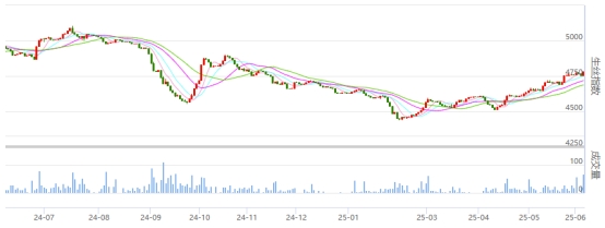 本周,在春繭原料成本支撐及內(nèi)銷市場(chǎng)拿貨積極性提升的雙重作用下,4A 級(jí)電子指數(shù)繼續(xù)有震蕩上行,累計(jì)上漲 0.49%,最終報(bào)收于 4781.50 點(diǎn)。從技術(shù)形態(tài)看,生絲電子指數(shù)周線和日線均收于均線之上,價(jià)格指數(shù)已攀升至本年度春繭上市以來(lái)的高點(diǎn)。