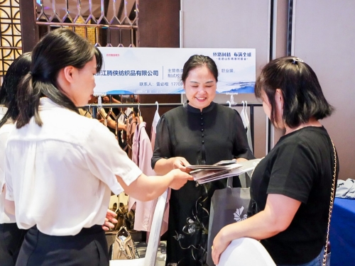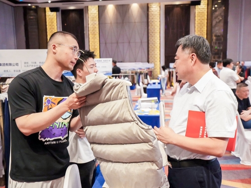 活動現(xiàn)場,印尚紡織、騰俠紡織、鳳凰莊、花王紡織、名尊紡織等30余家柯橋優(yōu)質面料企業(yè)與山東魏橋、希努爾、鴻天集團、方鐸服飾、元首針織、耶莉婭以及聊城棉服產業(yè)集群、汶上休閑裝產業(yè)集群等地的百余家服裝企業(yè)進行面對面對接,打造了一場商貿成效顯著的產業(yè)對接交流會。
