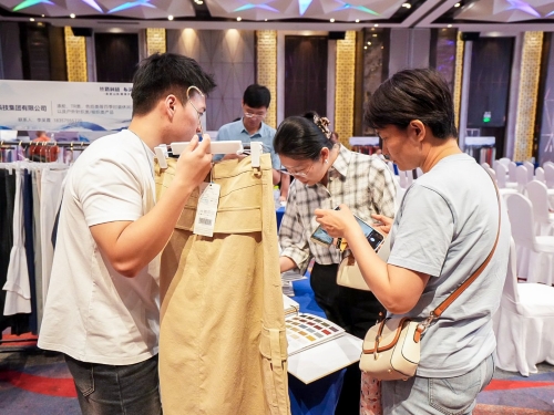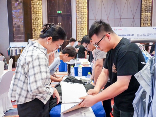 柯橋面料企業(yè)憑借前沿技術與優(yōu)質產品展現(xiàn)出十足的信心,而服裝品牌也在這場交流中收獲滿滿,實現(xiàn)了供需雙方的雙贏局面?!拔覀兇舜侮P注重點聚焦于女裝襯衫印花面料,以及新型口袋布和里布的廠家及其產品?,F(xiàn)場花王印花的快反定制印花機制令人眼前一亮,能夠很好地滿足我們定制專屬印花的需求。倚信紡織的‘柔性凸版印花工藝’結合防偽級精細印花技術,更是創(chuàng)意十足,我們后續(xù)會深入探討,將其應用到正裝里布領域。這次對接會為山東的服裝企業(yè)搭建了一個得以直面實力供應商的平臺,讓我們能獲取創(chuàng)新資源和開拓合作空間?!鄙綎|希努爾男裝股份有限公司職業(yè)裝設計研發(fā)總監(jiān)荊鑫對對接會給予了高度評價。