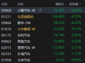 新能源車企走弱,小鵬汽車跌超6%。小鵬汽車董事長、CEO何小鵬在小鵬G7全球首秀發(fā)布會(huì)后的群訪環(huán)節(jié)上透露,汽車公司的競(jìng)爭(zhēng)在下一個(gè)5年會(huì)非常血腥。