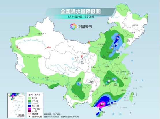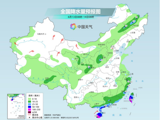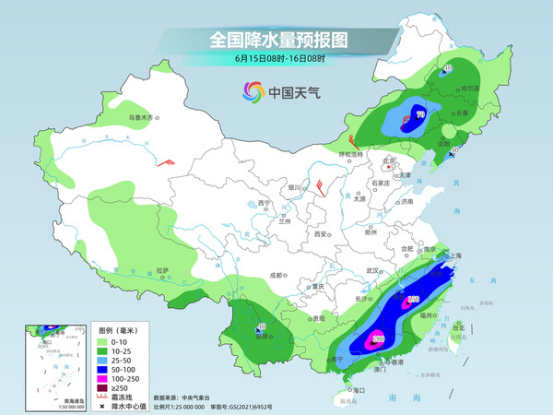 后天,內(nèi)蒙古東部、江南中東部和南部、華南中北部等地部分地區(qū)有大到暴雨,其中,江西東部、廣東北部等地部分地區(qū)有大暴雨,廣東北部等地局地特大暴雨。
