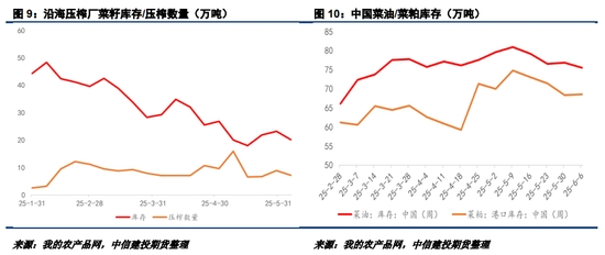 綜合來看,三季度中國菜籽進口數量已經較為有限,同比、環(huán)比均有望下降。我們預估沿海壓榨廠會控制壓榨節(jié)奏,報價或相對堅挺。誠然目前菜系油粕缺乏需求性價比優(yōu)勢,但在供應轉緊的背景下,預計菜籽及油粕庫存仍有望去庫,賦予估值支撐。