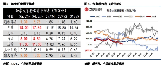 由于加菜油在減碳Credit當中計算結果不佳,后期加菜油獲得稅收補貼的潛力并不高。即便如此,美國生物燃料需求的提振至少有利于加拿大菜籽壓榨需求維持在1100萬噸量級,甚至向1200-1300萬噸水平靠近。如果25/26年度,加菜籽壓榨需求向好,或導致新季加菜籽對歐盟及中國出口潛力下降。因此,即便25/26年度中加經貿回暖,加拿大可向中國出口的菜籽數量或仍有限。目前加菜籽榨利已經臨近負值,后期可關注能否觸底回升。